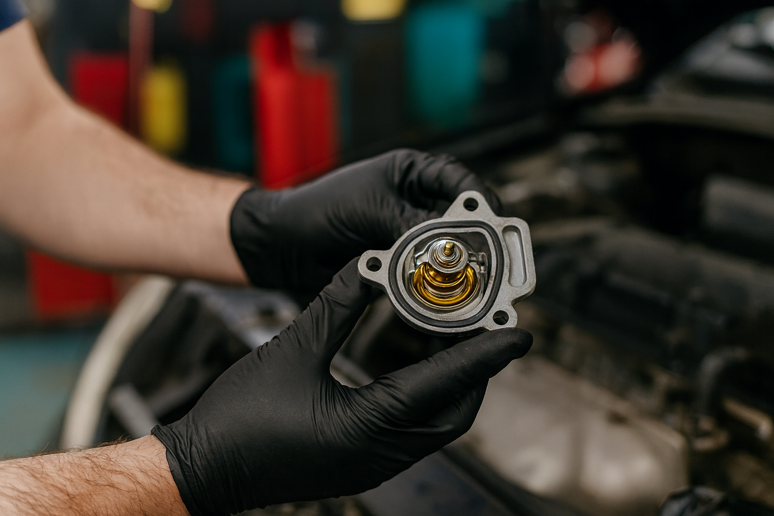 The thermostat is a small device in the engine’s cooling system that opens and closes to control coolant flow and keep the engine at the proper temperature. When the engine is cold (for example, on a morning start), the thermostat stays closed to help the engine warm up quickly. Once the engine reaches its optimal operating temperature, the thermostat gradually opens, allowing coolant to circulate through the radiator and prevent the engine from getting too hot. This balance keeps the engine running efficiently — not too cold and not too hot.